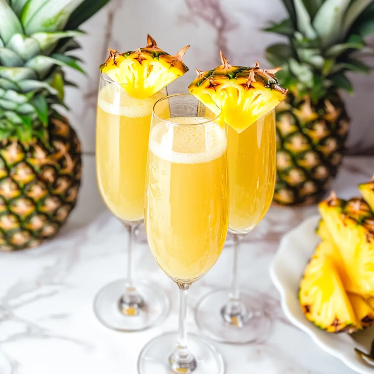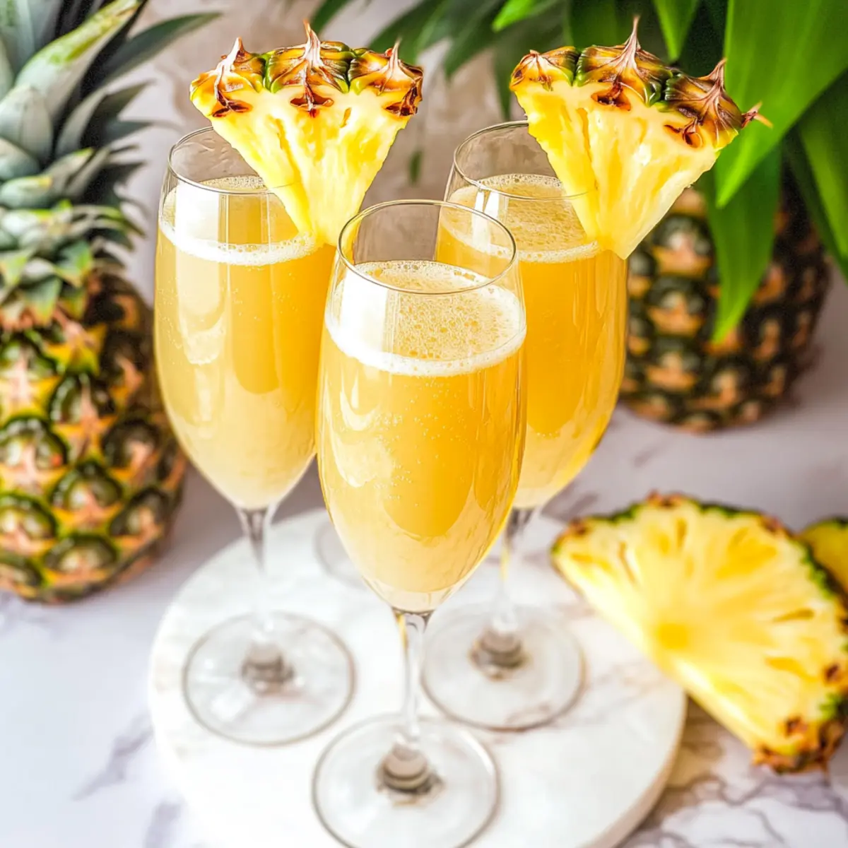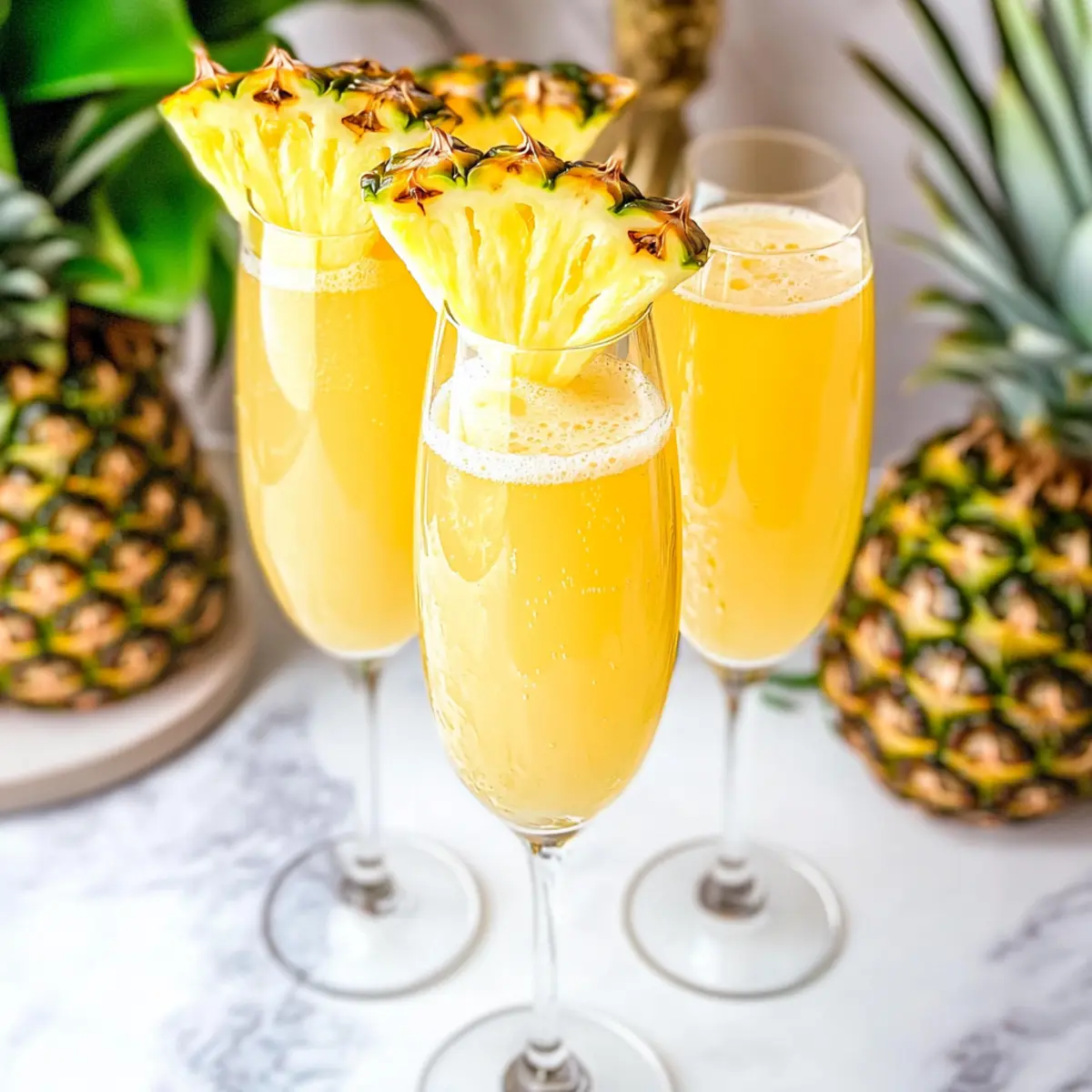 The sound of ice clinking in a chilled glass is the perfect prelude to a delightful brunch. I often find myself daydreaming about sunny mornings filled with laughter, good friends, and a refreshing drink in hand—like these Pineapple Mimosas. This 3-ingredient cocktail is a tropical escape, effortlessly combining the sweet tang of pineapple juice with crisp champagne and a bubbly splash of lemon-lime soda. Not only is it an easy concoction that can be whipped up in minutes, but it also turns any gathering into a special occasion. Whether you're celebrating milestones or just soaking up the weekend sun, these mimosas are a guaranteed crowd-pleaser. Ready to toast to some tropical flavor? Let’s dive into the refreshing world of Pineapple Mimosas!