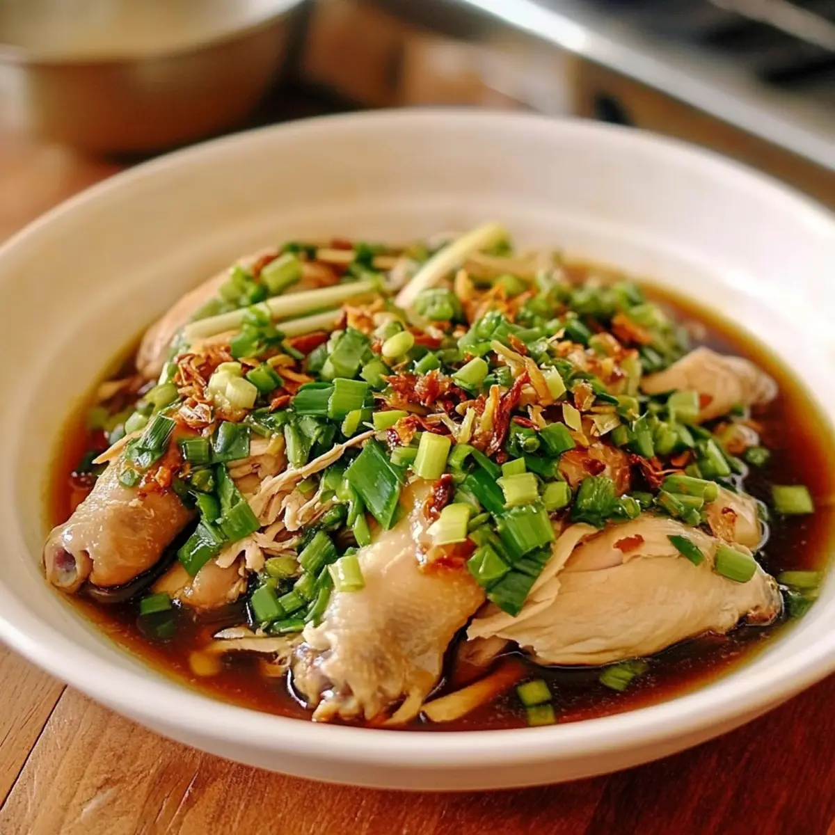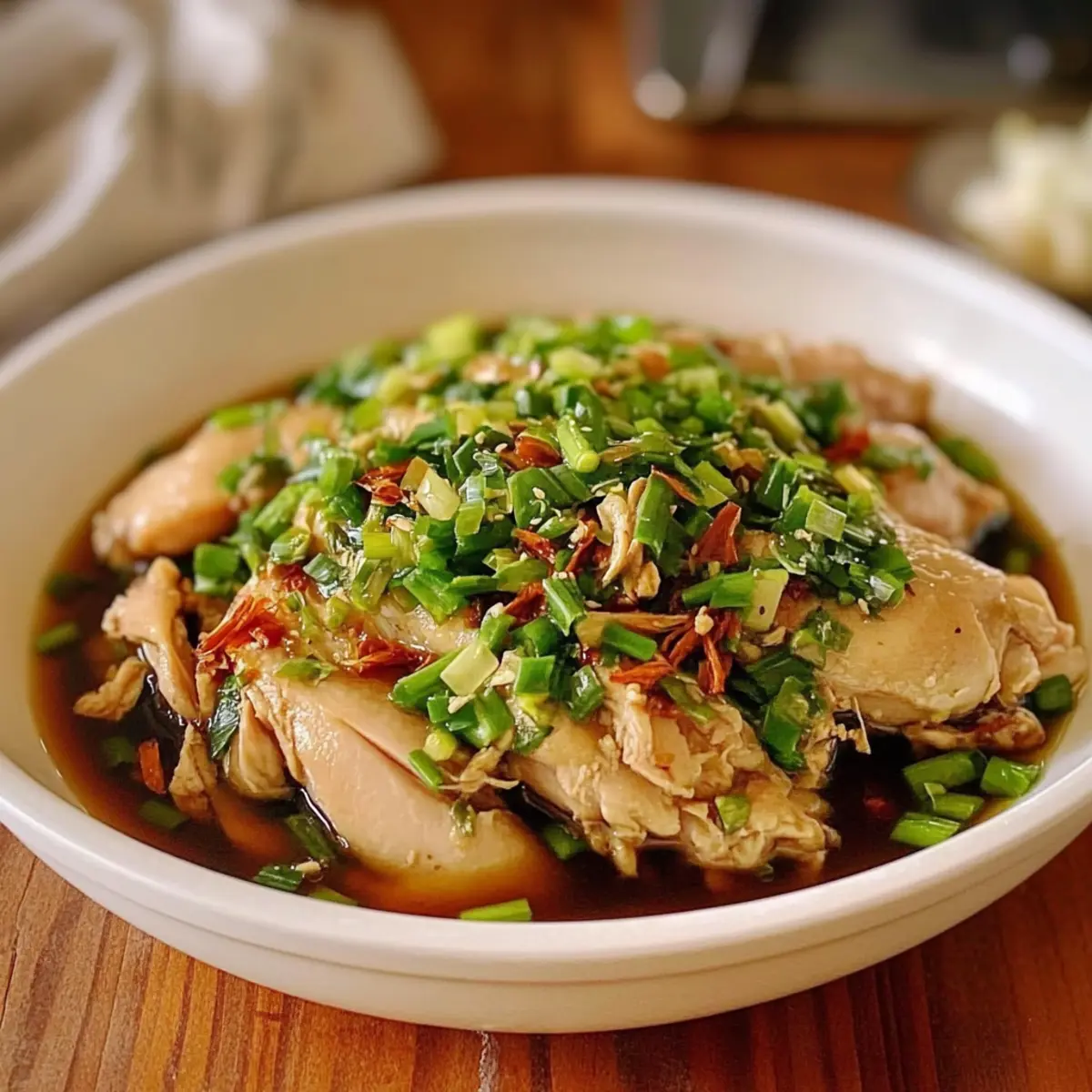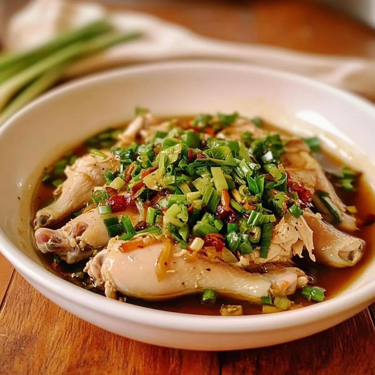 Poached Chicken with Ginger Scallion Sauce for a Refreshing Meal