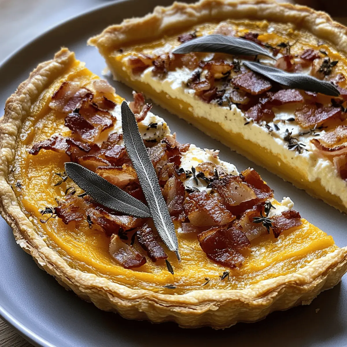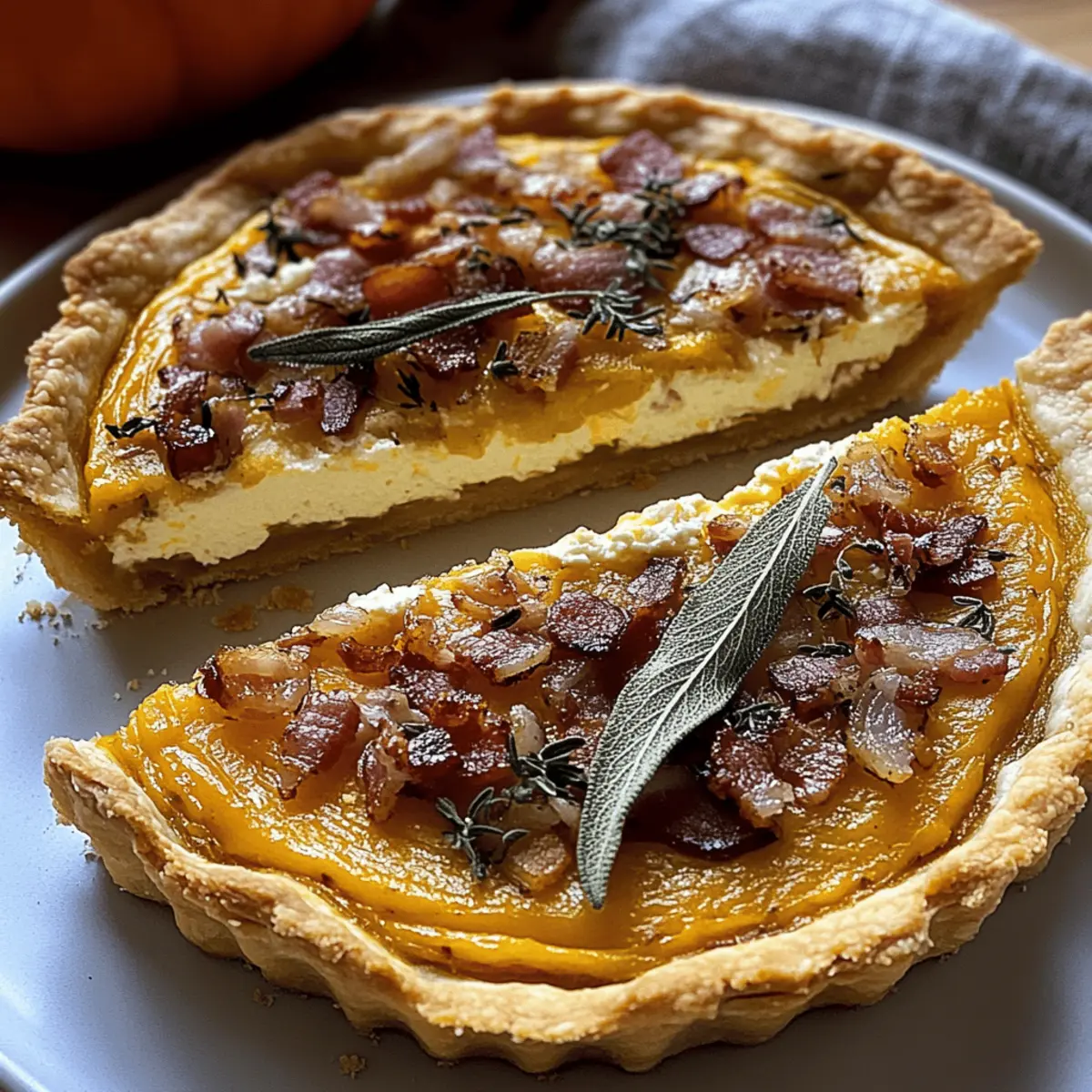 Comforting and Delicious: This Pumpkin, Ricotta & Caramelized Onion Tart brings the warmth of fall right to your table, blending comforting flavors that everyone loves.