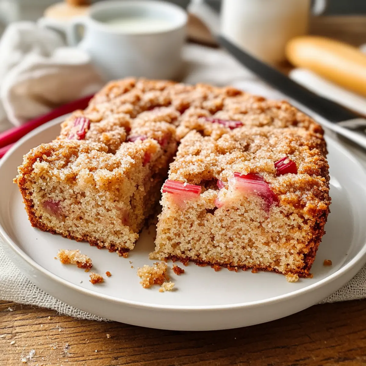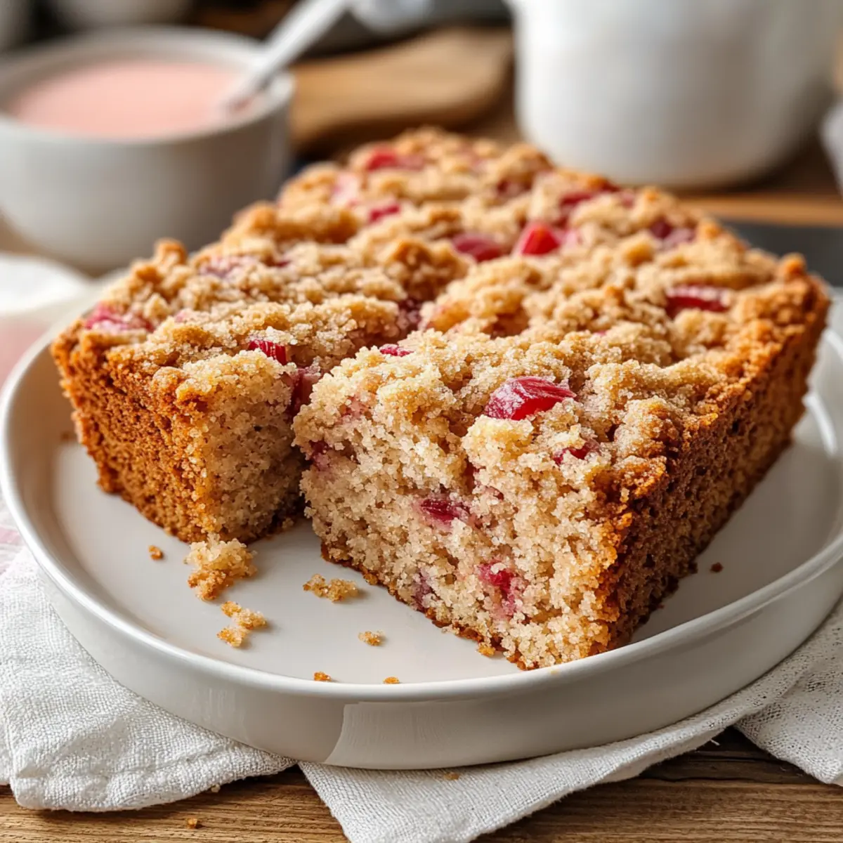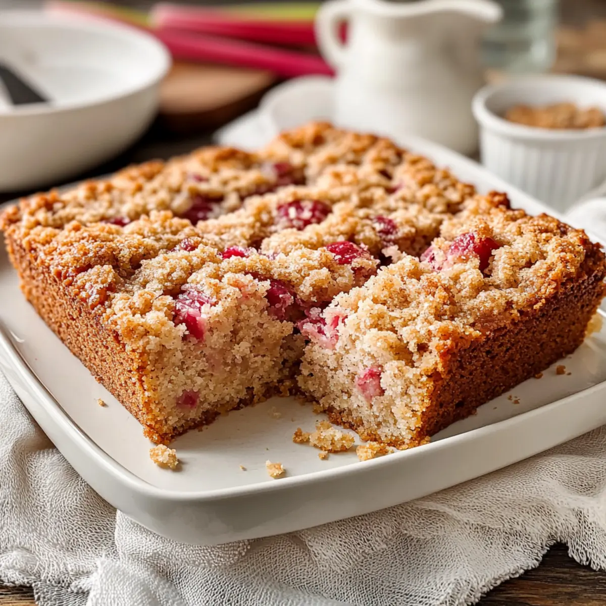 Bursting with Flavor: The tartness of rhubarb perfectly complements the rich, buttery undertones of the cake, while the cinnamon streusel adds a delightful crunch.