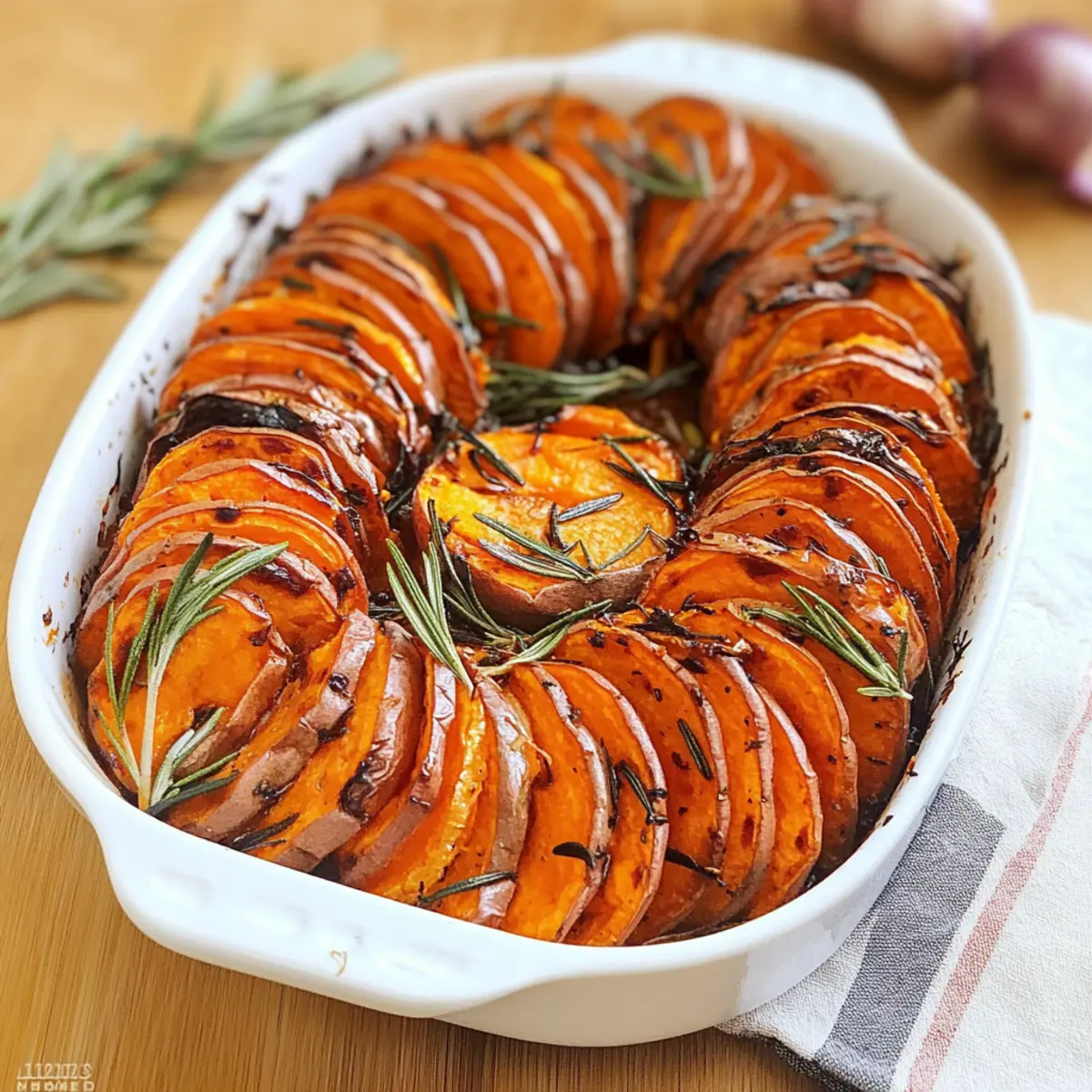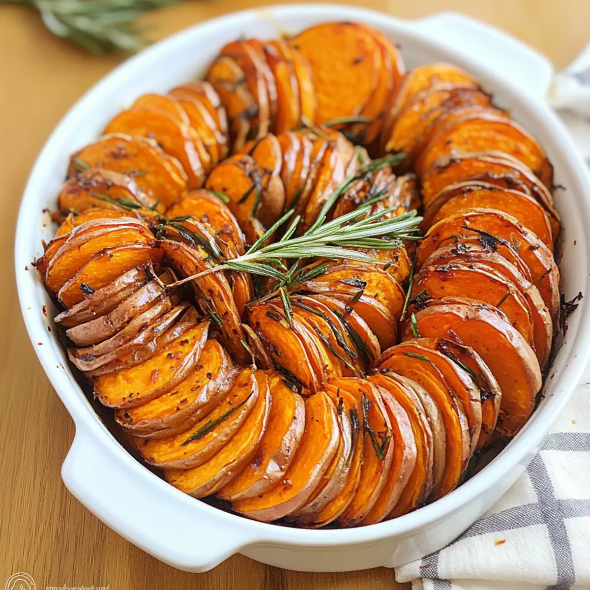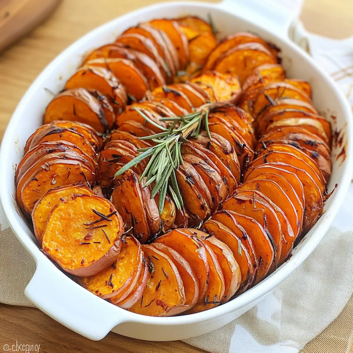 Slice your sweet potatoes into even pieces and arrange them vertically in the prepared baking dish. As you layer, intersperse thin slices of shallots between some of the sweet potato layers to enhance flavor throughout. This beautiful presentation will make your Crispy Roasted Rosemary Sweet Potatoes visually appealing, too!