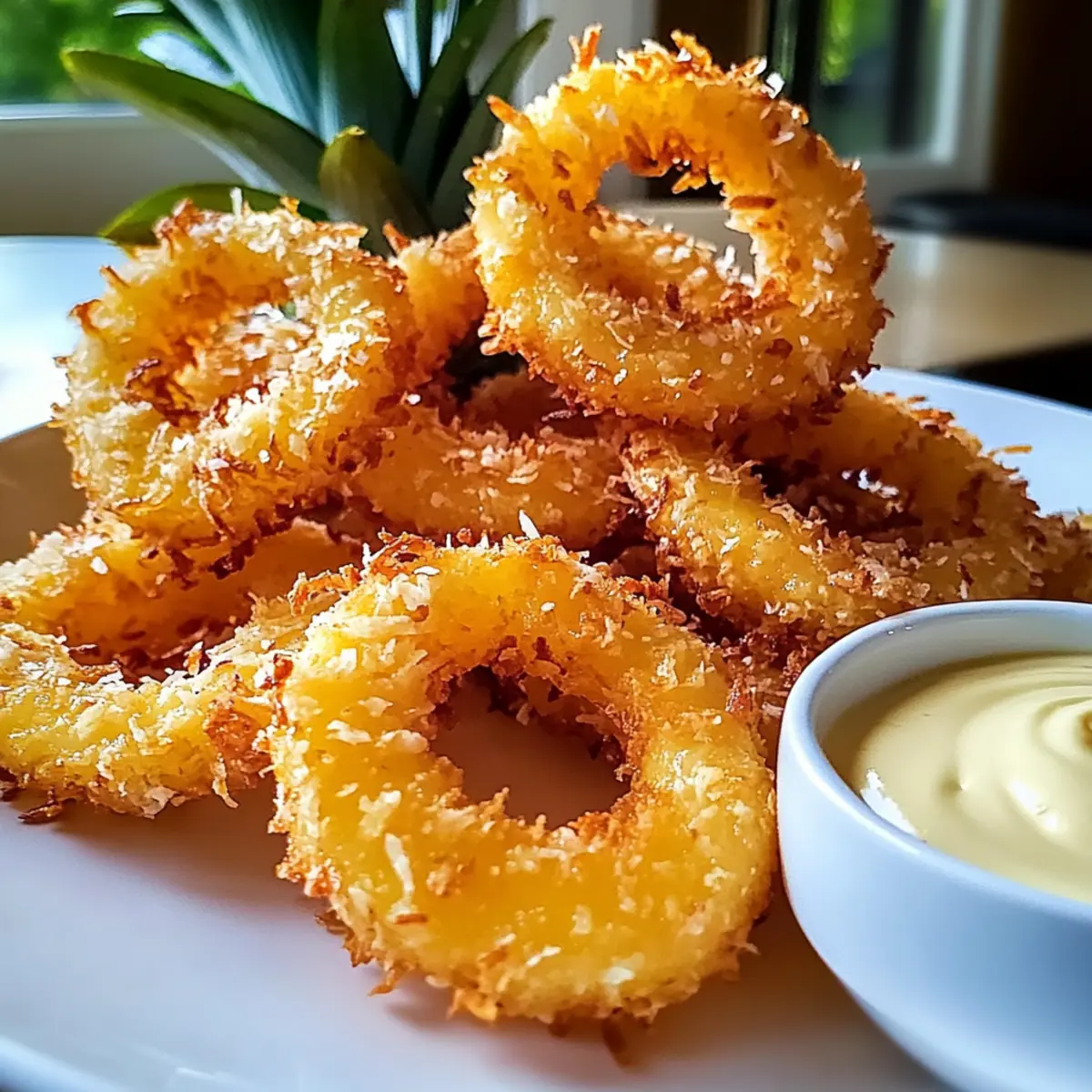 In the meantime, gather three shallow bowls to create your breading station. Fill one bowl with all-purpose flour, the second with a mixture of beaten eggs and creamy coconut milk, and the third with sweetened coconut flakes. This assembly will streamline the process, making it easy to coat each pineapple ring while you anticipate the crispy, golden finish.