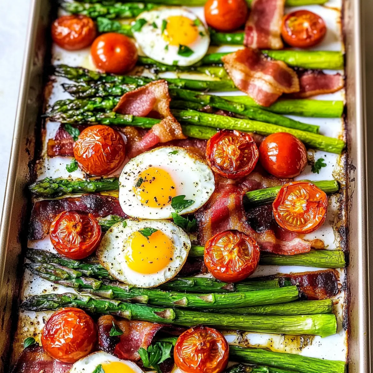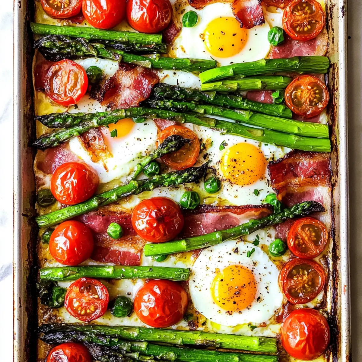 There's nothing quite like the aroma of breakfast wafting through the house, signaling a new day filled with possibilities. This Gluten-Free Sheet Pan Breakfast Bake is my answer to those busy mornings when time feels like it's slipping away. In just 30 minutes, you can whip up a nourishing meal that’s not only gluten and dairy-free but also minimizes cleanup with its one-pan approach. Imagine delightful eggs nestled among fresh asparagus and juicy tomatoes, all enhanced by crispy bacon's savory notes. This dish is perfect for family gatherings or a quiet morning solo, making it a versatile crowd-pleaser. Curious how to create this morning masterpiece that combines convenience with flavor? Let’s dive in!