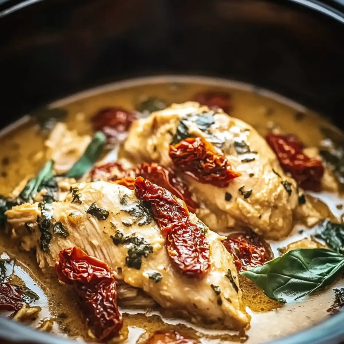 These Slow Cooker Tuscan Chicken components are perfect for meal prep enthusiasts! You can season the chicken (using Italian seasoning, garlic, salt, and pepper) and store it in the refrigerator for up to 24 hours in advance. The sun-dried tomatoes and chicken broth can be measured and prepped ahead as well, which saves valuable time during busy weeknights. To keep the chicken tender and flavorful, remember to seal it in an airtight container. When you're ready to cook, simply transfer everything to the slow cooker, pour in the liquids, and allow it to simmer as directed. You'll enjoy the same delicious, comforting results with minimal effort!