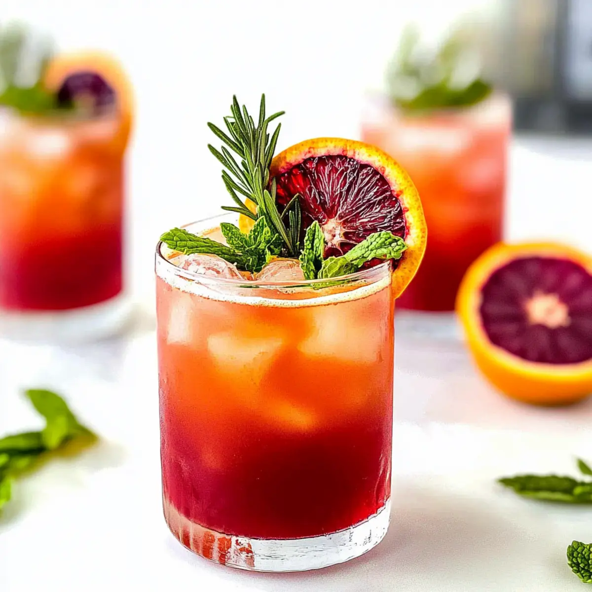 - Garnish with mint leaves and a sprig of rosemary. Optionally, add a thin slice of blood orange on the rim of the glass.