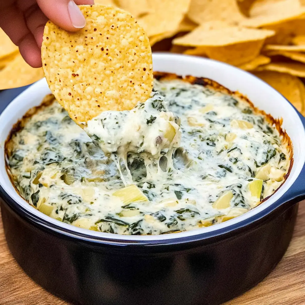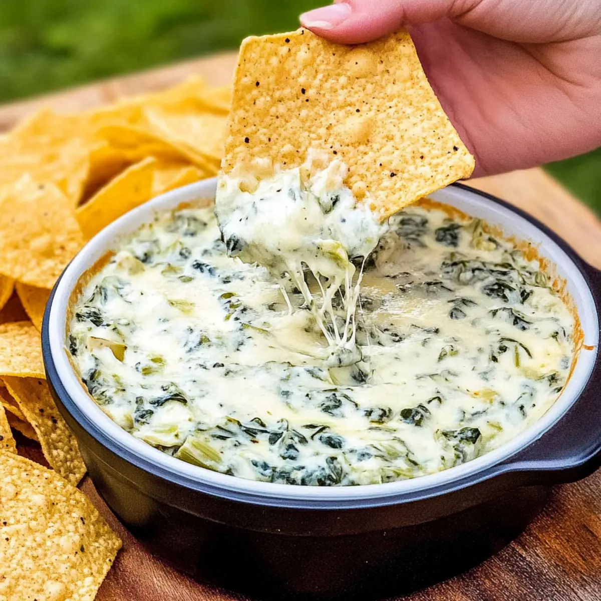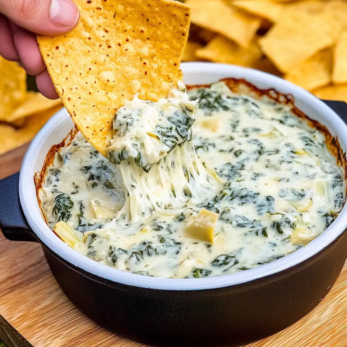 The aroma of sizzling cheese and fresh garlic wafting through the air instantly transports me to a cozy gathering with friends. This Spinach Artichoke Dip Recipe is my go-to for any celebration, and believe me—it disappears faster than I can say "party food!" In just 15 minutes, you can whip up this creamy dip, packed with the goodness of fresh spinach and tender artichokes. Not only is it an easy appetizer that caters to your guests' cravings, but it’s also a crowd-pleaser, ensuring smiles all around. Whether you're hosting game night or simply looking for a comforting snack, this dip promises to be a delightful companion. What’s your favorite way to enjoy a homemade dip?