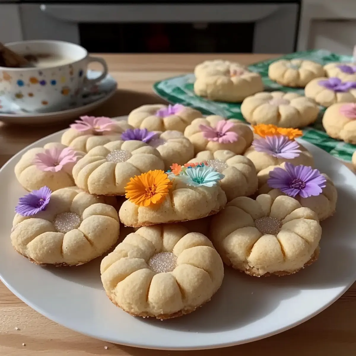 Sprinkle Swap: Instead of edible flowers, use colorful sprinkle mixes for a fun, kid-friendly version of these cookies, perfect for parties!