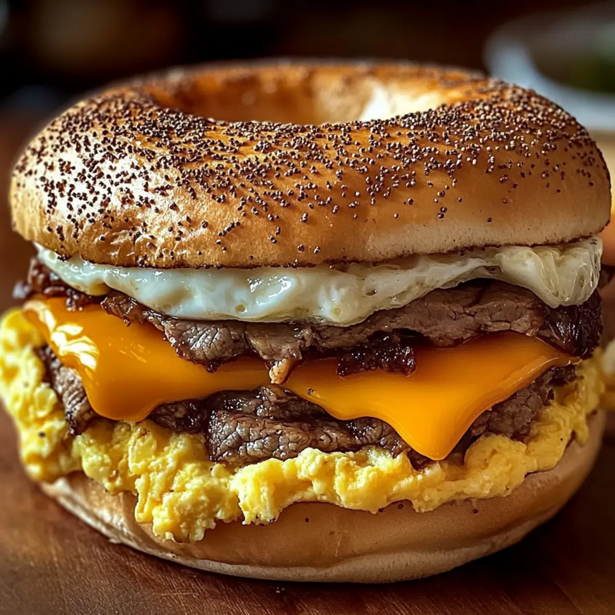 Savory Steak Egg and Cheese Bagel Sandwich for Breakfast Bliss