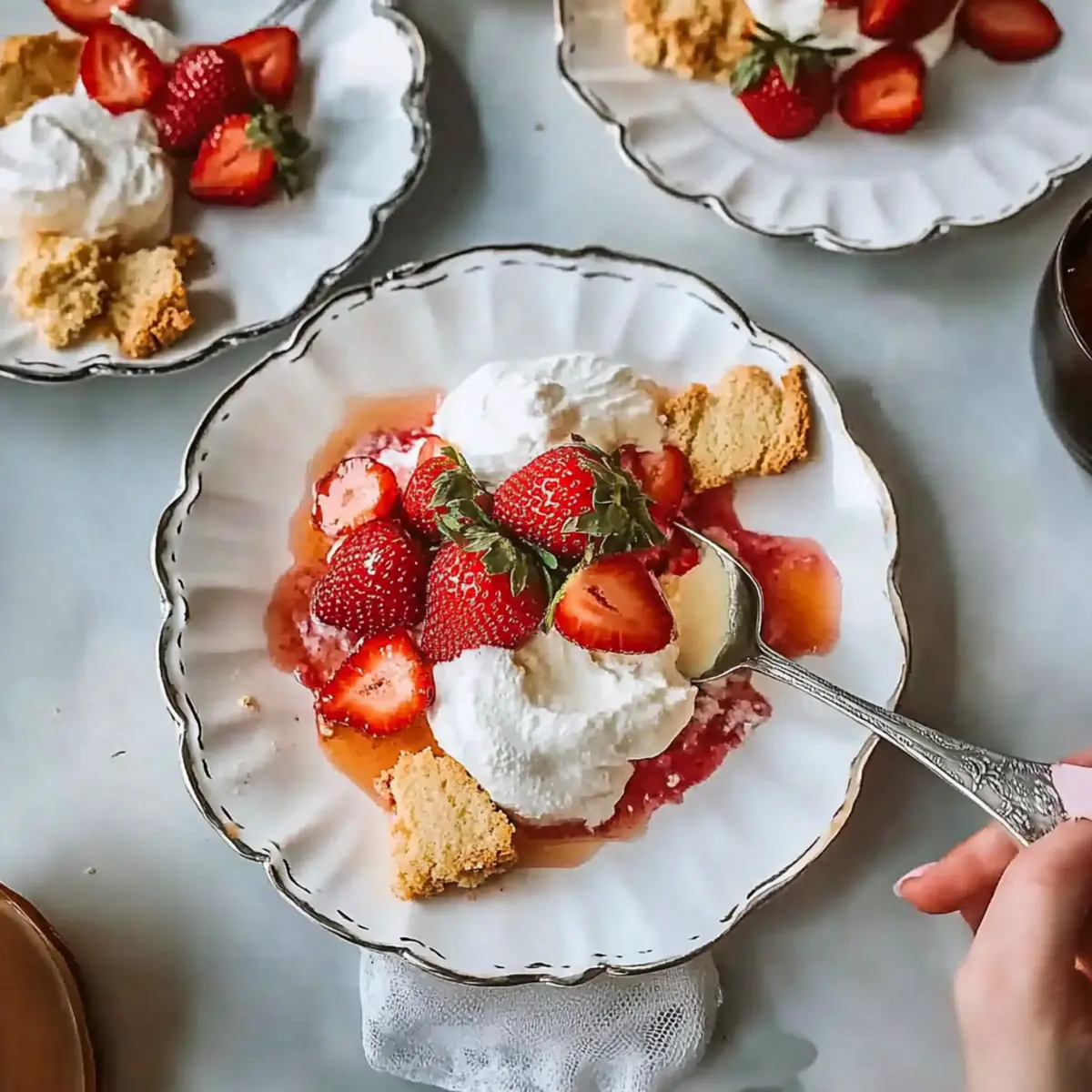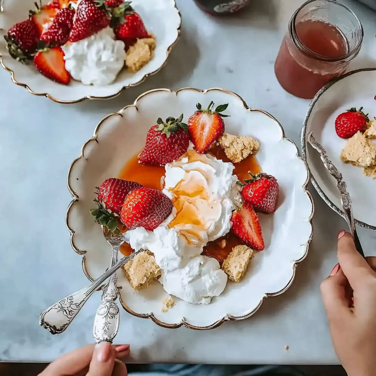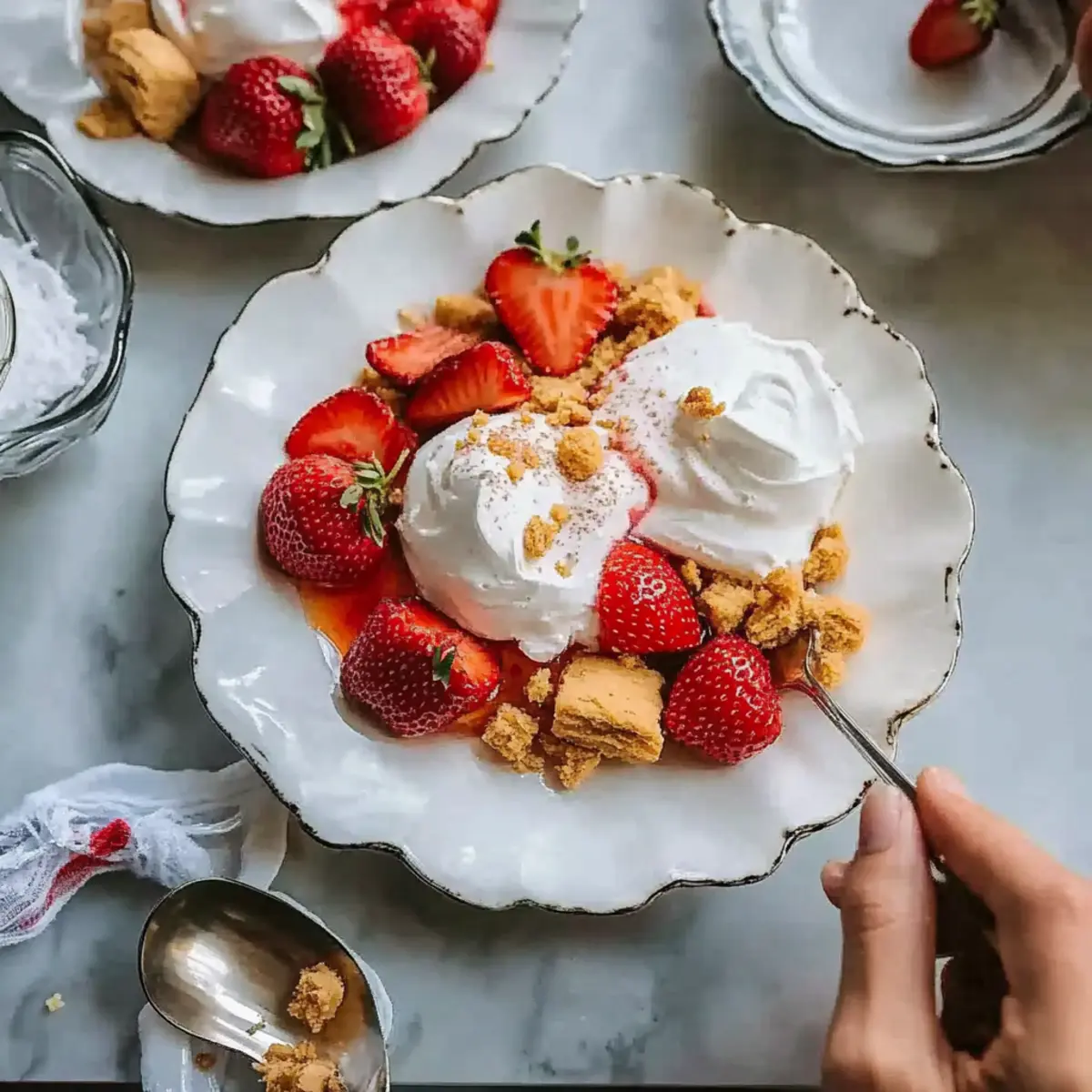- Assemble the Dessert: Spoon macerated strawberries into bowls and dollop whipped cream mixture on top.