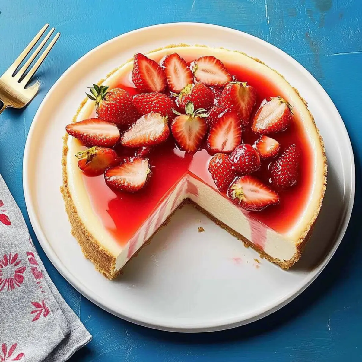No worries! Cracking can happen, especially if the cheesecake is overbaked. To prevent this, consider baking it in a water bath. Wrap your springform pan with aluminum foil to keep out water, and place it in a larger pan filled with hot water as it bakes. If cracks occur despite this, don’t fret! You can simply cover it with the strawberry glaze and fresh berries, and no one will be the wiser.