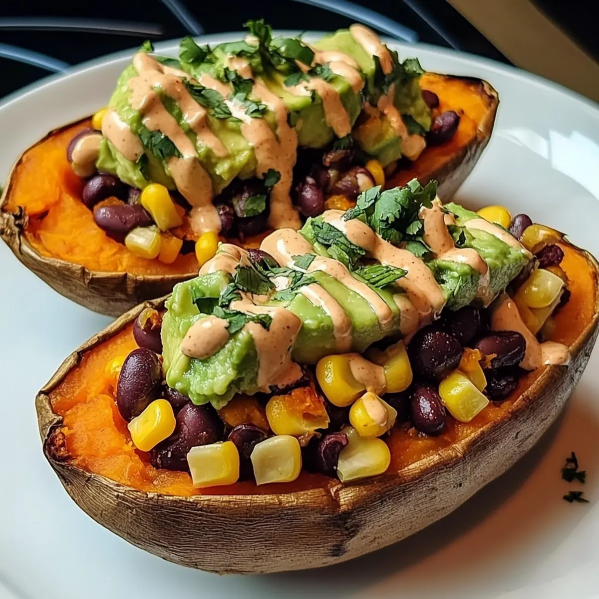 Crunchy Topping: Top your stuffed sweet potatoes with crushed tortilla chips or pumpkin seeds for that satisfying crunch. It’s a perfect contrast to the creamy filling!