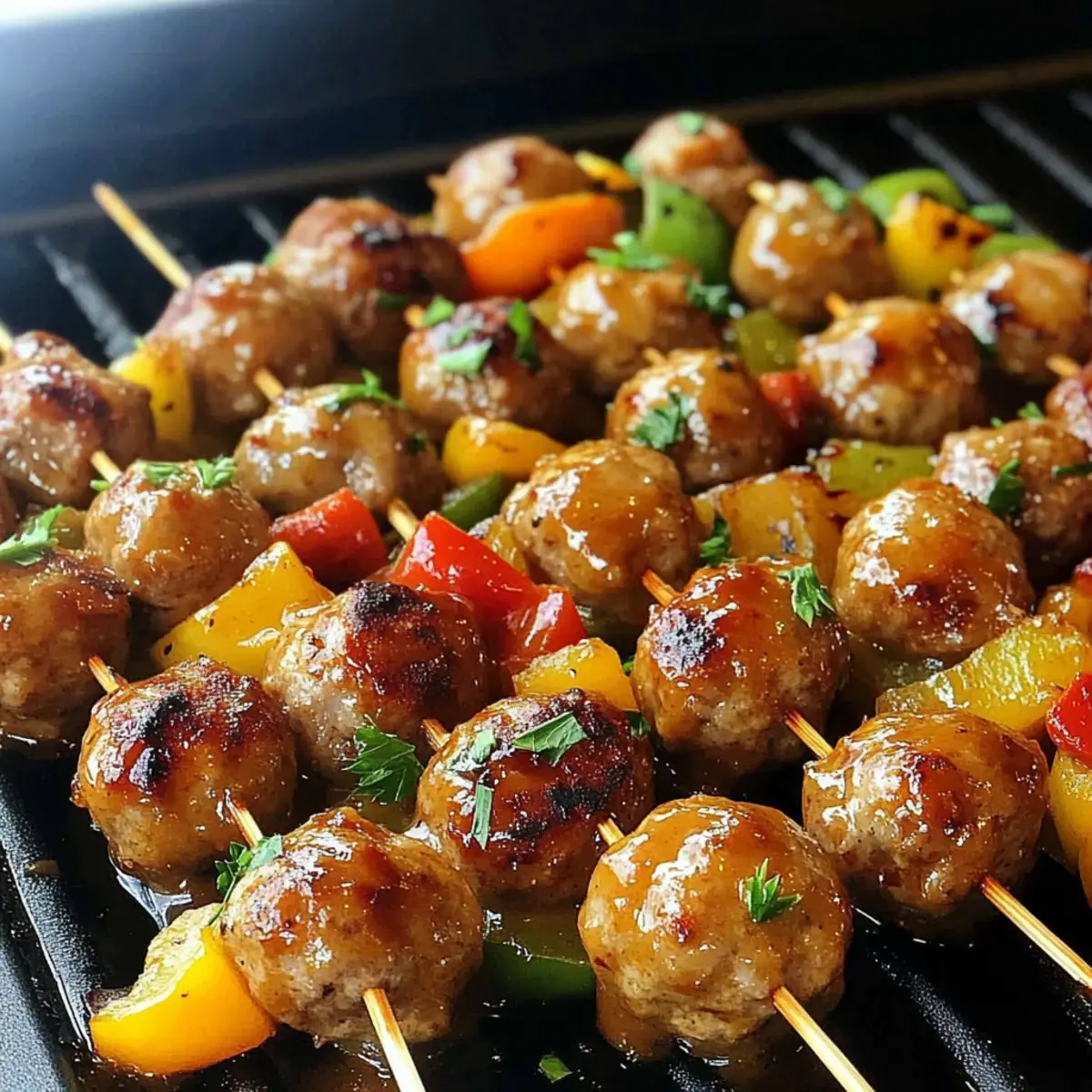 These Sweet and Sour Meatball Kabobs are perfect for busy home cooks looking to save time during the festive season! You can prepare the meatballs up to 24 hours in advance. Simply mix the ground meat with breadcrumbs, egg, and soy sauce, shape them into balls, and refrigerate on a baking sheet. For the sauce, you can combine the ketchup, brown sugar, apple cider vinegar, and pineapple juice up to 3 days ahead to deepen the flavors. When you’re ready to assemble, thread the prepped meatballs with bell peppers and onions onto soaked skewers, glaze with the sauce, and grill for a quick and delicious appetizer that’s just as delightful as if it were made fresh!