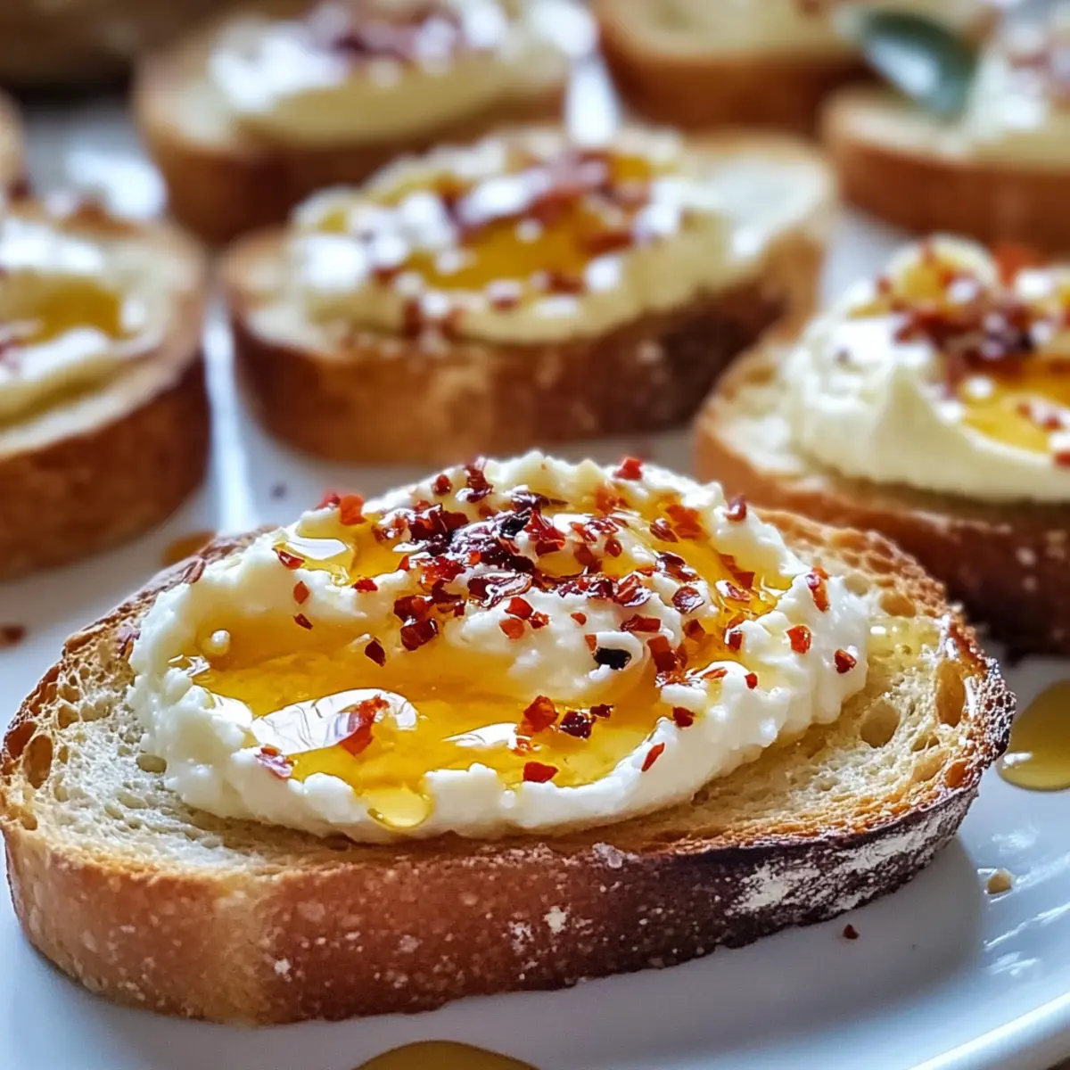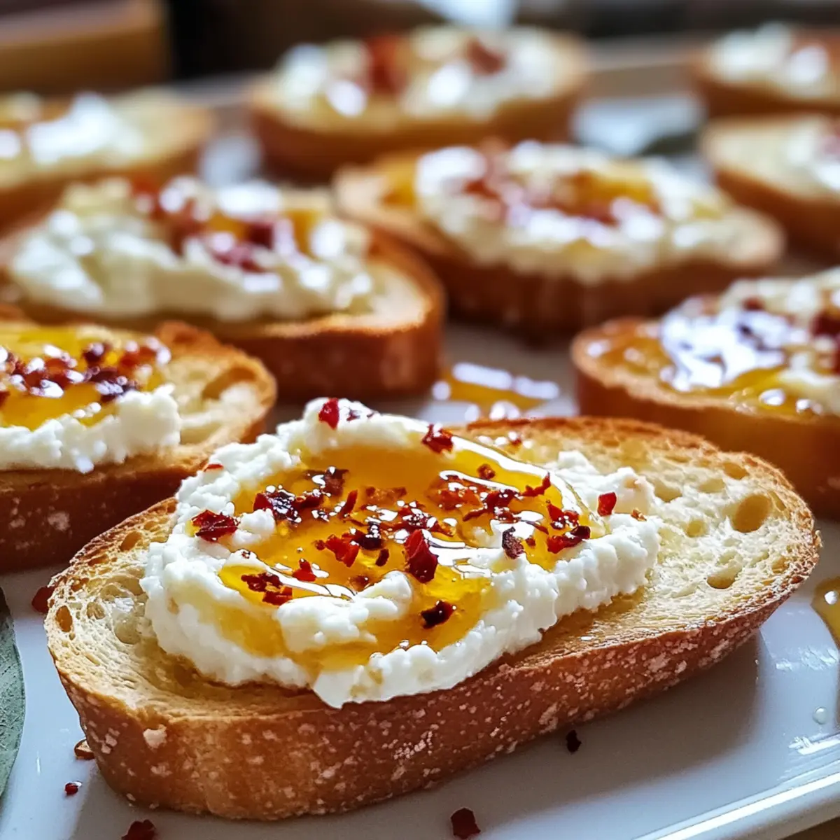 - Drizzle hot honey over each crostini before serving.