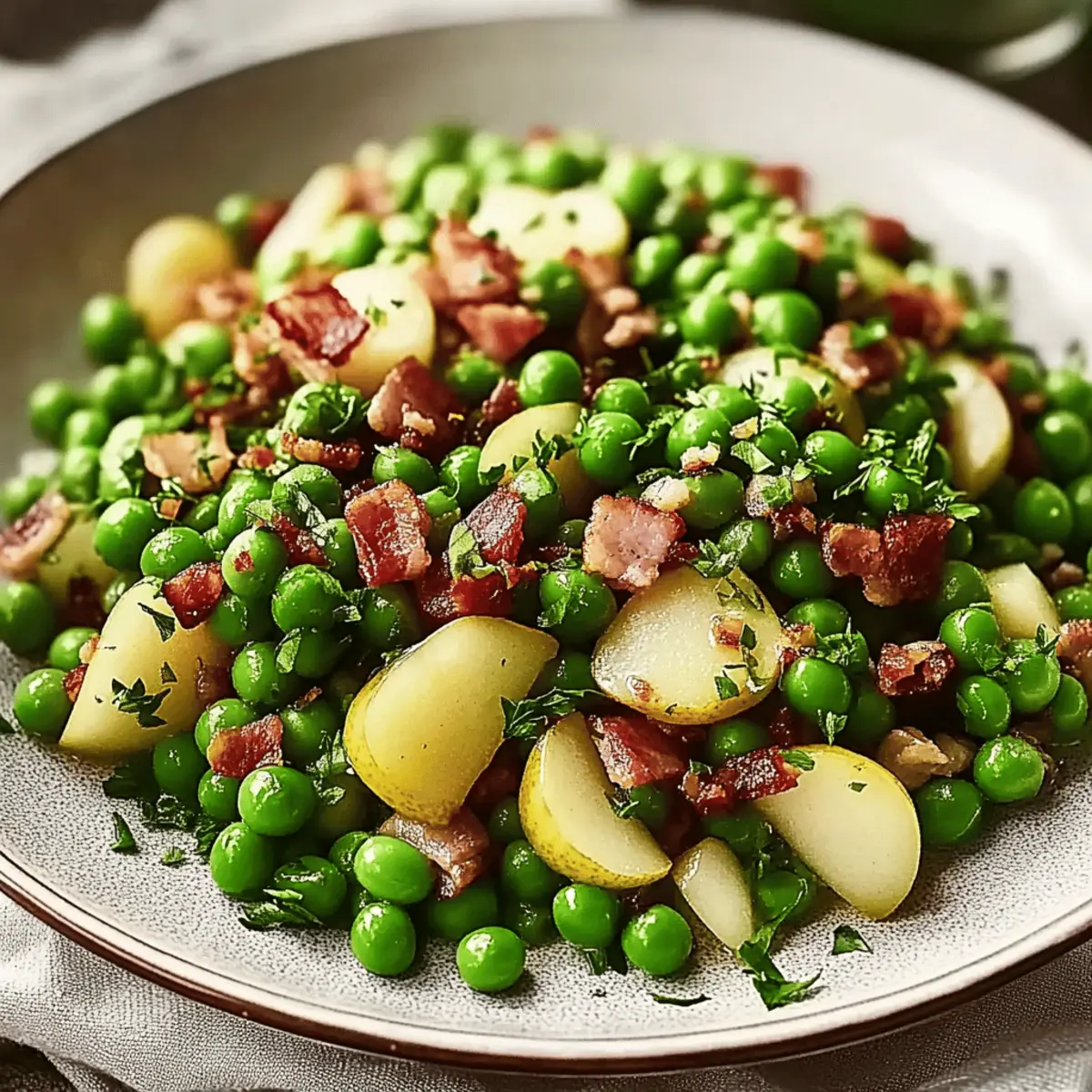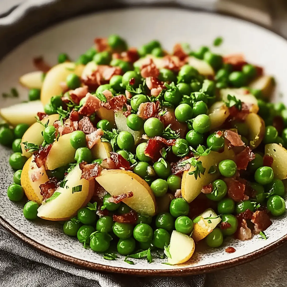As my family and I gathered around the table during the holidays, a delightful aroma wafted through the kitchen, signaling the arrival of my favorite festive dish: Thanksgiving Peas with Pear and Pancetta. The combination of sweet, juicy pears, tender peas, and crispy pancetta—with just a hint of tangy Dijon mustard—creates a warm embrace of flavors that complements any holiday feast. What I love the most about this vibrant side dish is its easy preparation and crowd-pleasing appeal, making it a go-to for gatherings. Whether you're celebrating Thanksgiving or simply looking to impress guests, this recipe brings elegance without all the fuss. Are you ready to elevate your holiday table with this delicious twist?