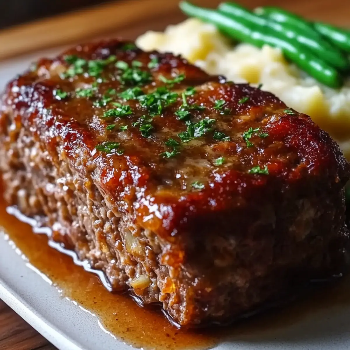 Comforting flavors: This meatloaf is a warm embrace on a plate, combining savory spices and tender meat that evoke cherished family gatherings.