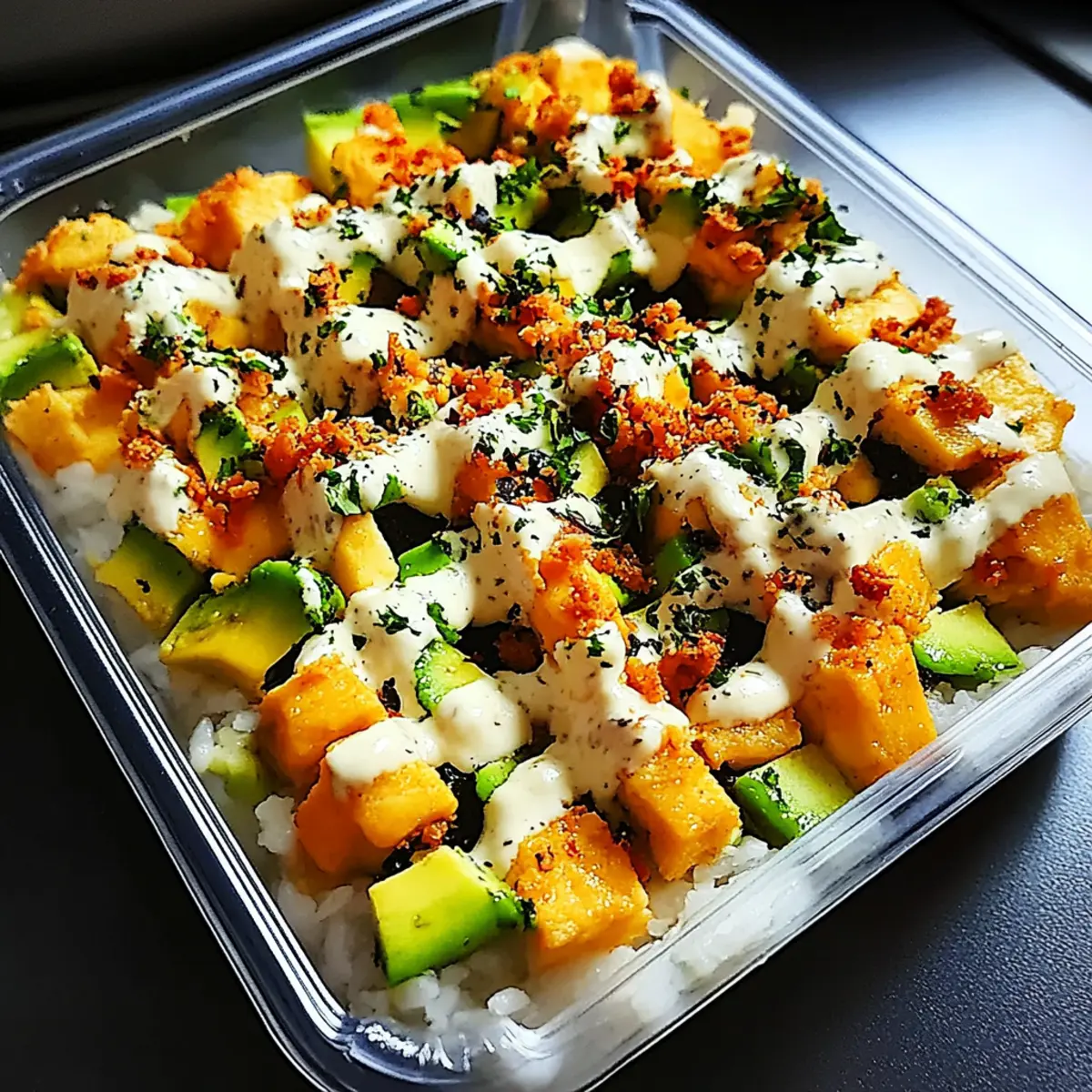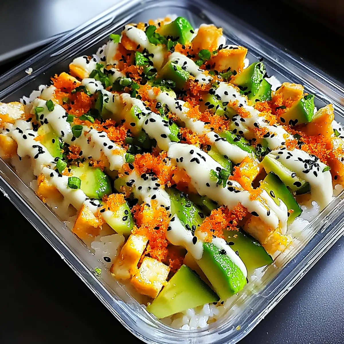 Preparing the Vegan Sushi Bake ahead of time is a fantastic way to save time on busy weeknights! You can prep the sushi rice, season it, and layer the ingredients in the baking dish up to 24 hours in advance; simply cover the dish tightly with plastic wrap to maintain moisture and prevent browning. The crumbled tofu and chopped veggies can also be prepared and stored in separate containers in the fridge for up to 3 days. When you’re ready to bake, simply layer a sheet of nori over the assembled ingredients, top with the remaining rice, and pop it in the oven at 350°F (175°C) for about 25 minutes. This way, you’ll enjoy the same delicious flavors with minimal effort!