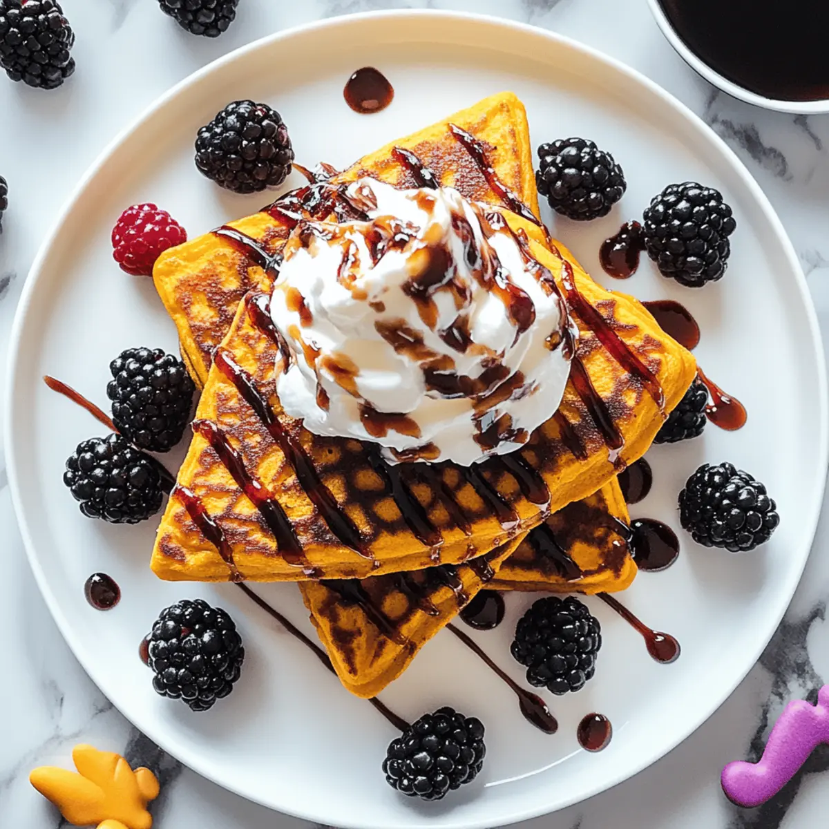 Whipped Cream Ghosts: Use whipped cream shaped into ghost figures to accompany the waffles, creating a festive scene on your plate.