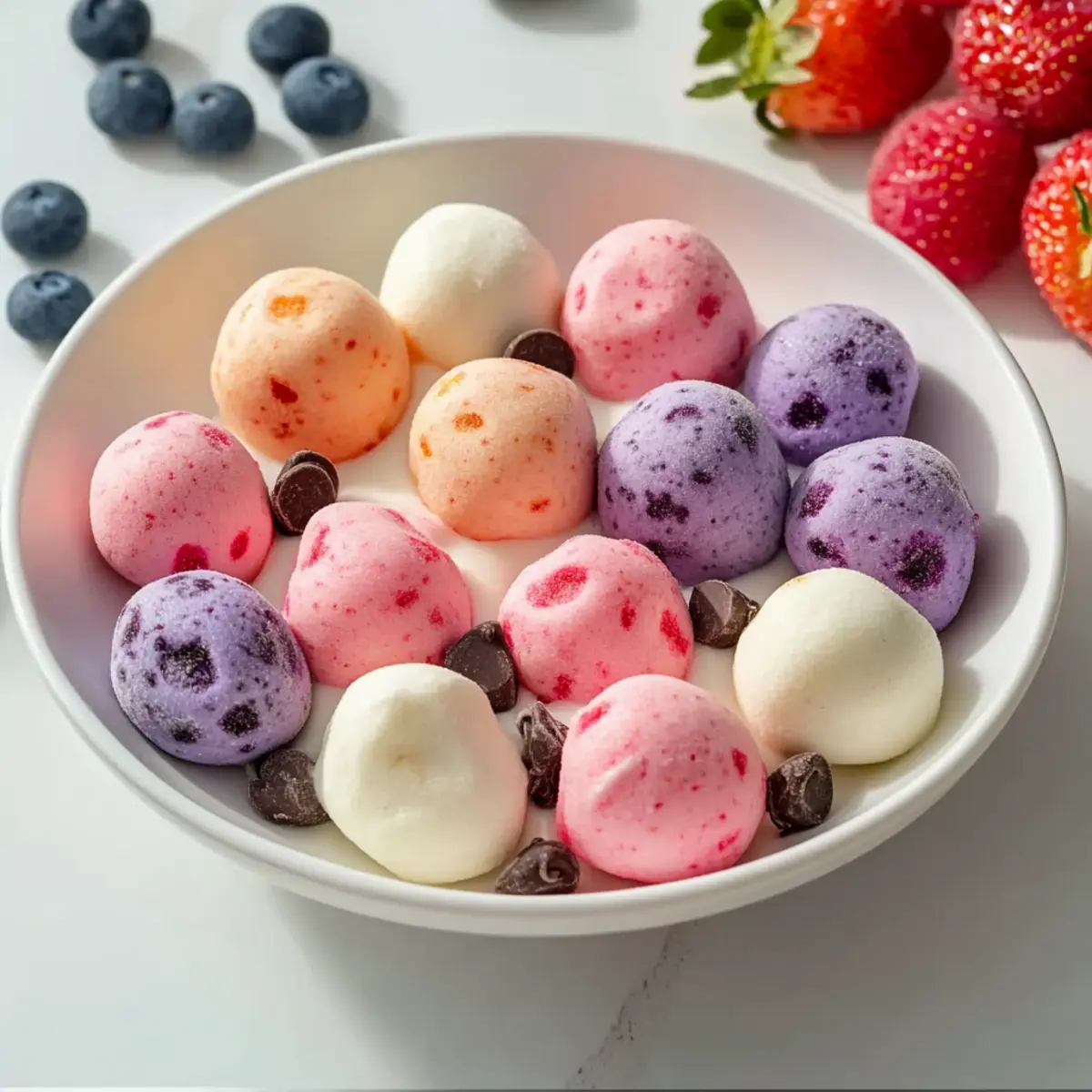 Fresh Fruit Salad: A medley of seasonal fruits adds vibrant colors and natural sweetness, complementing the yogurt bites beautifully. The fresh juiciness enhances every bite, making it a perfectly refreshing side.