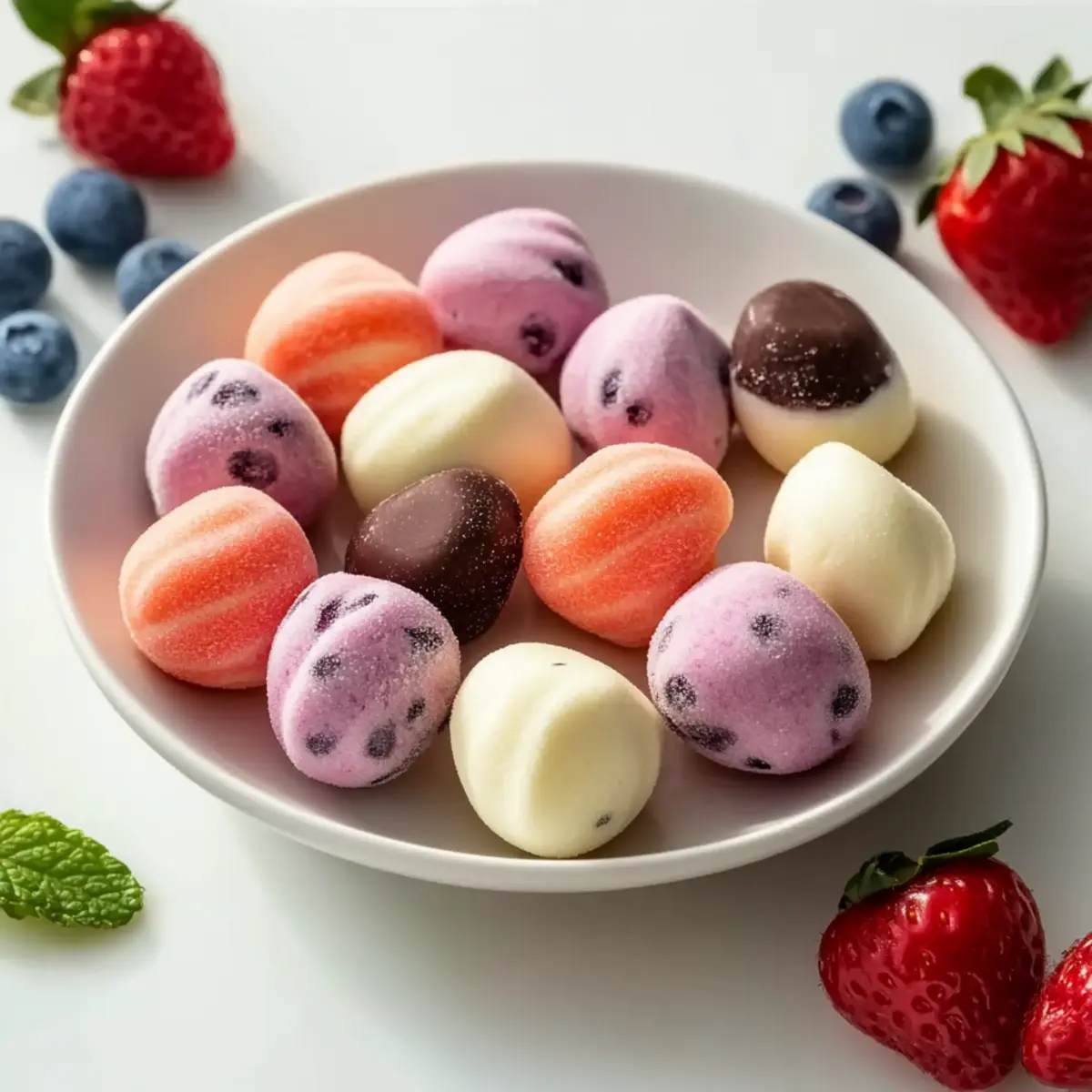 Colorful Rainbow: Use natural fruit purees or food coloring to create vibrant rainbow yogurt bites that are as beautiful as they are delicious!